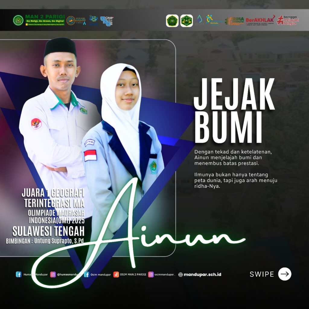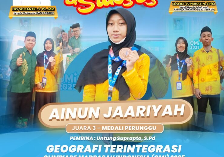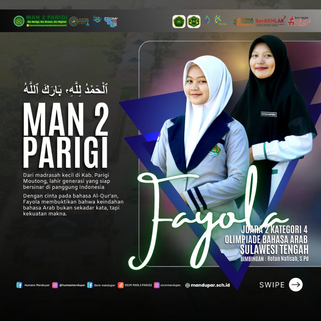 MAN 2 Parigi (22/11)—MAN 2 Parigi menerima penghargaan sebagai Madrasah Peserta Olimpiade Madrasah Indonesia (OMI) Tingkat Nasional sekaligus Madrasah Peraih Medali Perunggu Tingkat Nasional Tahun 2025. Penghargaan tersebut diberikan pada kegiatan Rapat Koordinasi Program Hasil Terbaik Cepat (Rakor PHTC) yang digelar di Hotel Estrella, Luwuk Banggai, pada 21 November 2025.